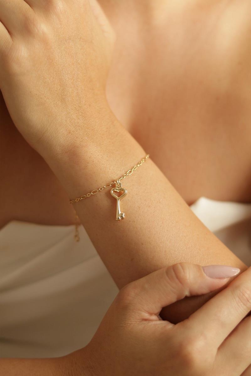 A Pulseira Chave Dourada é a escolha perfeita para quem busca um acessório clássico e versátil. Seu design delicado traz charme e elegância, ideal para usar sozinha ou combinar com outras peças.
