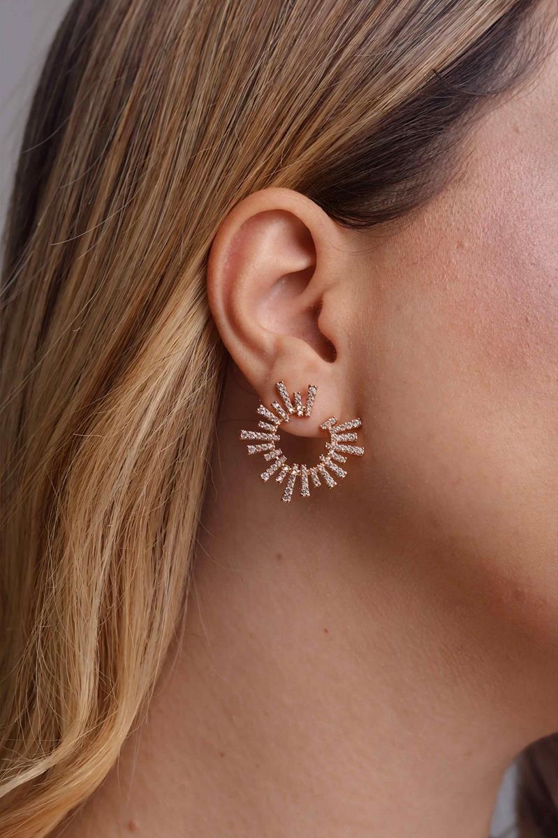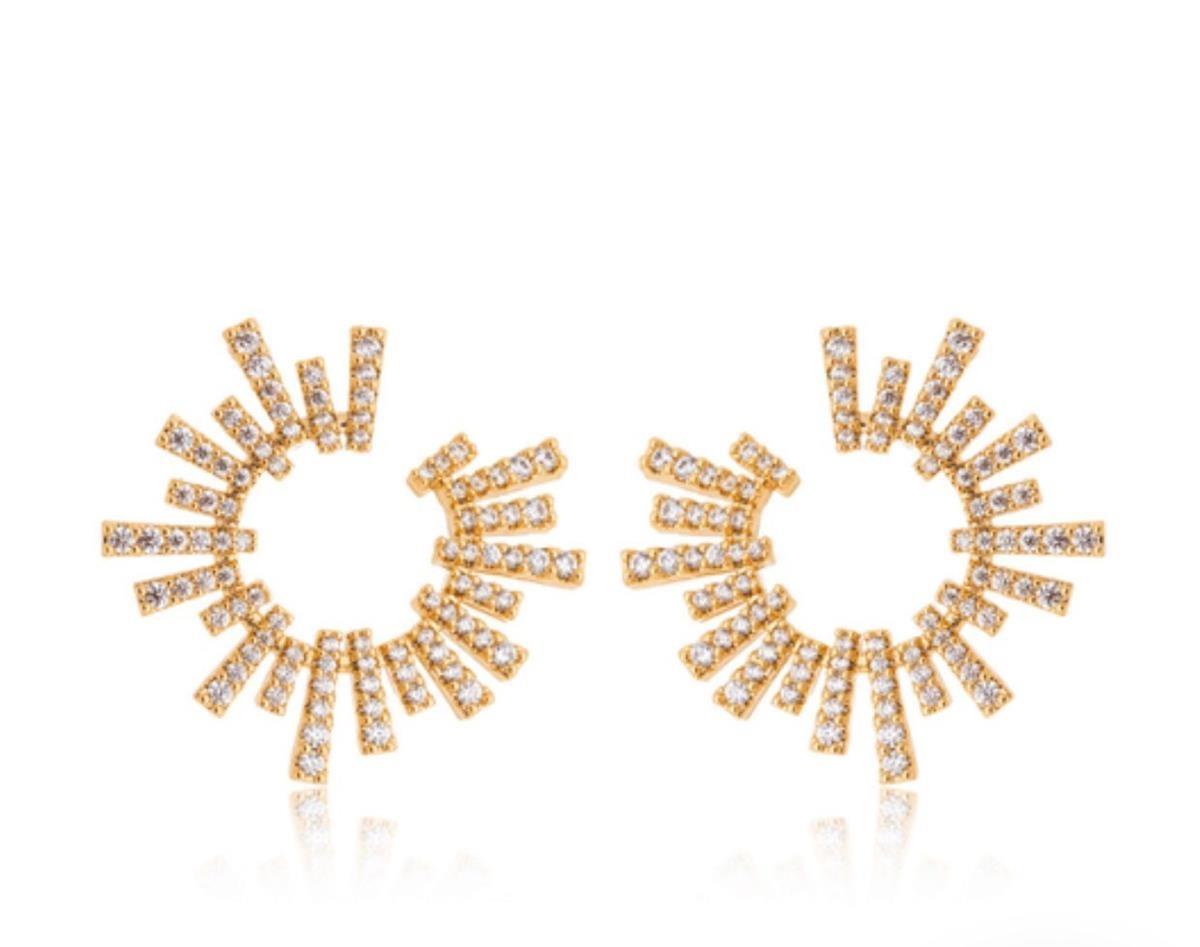 Brinco Circulo Dourado, Estacas Cravejado na Zircônia , um Brinco cheio de Estilo!