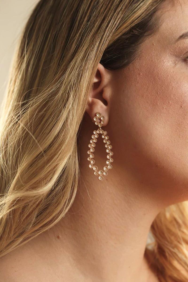 - Formato: gota oval formada por pequenas flores cravejadas com cristais brilhantes