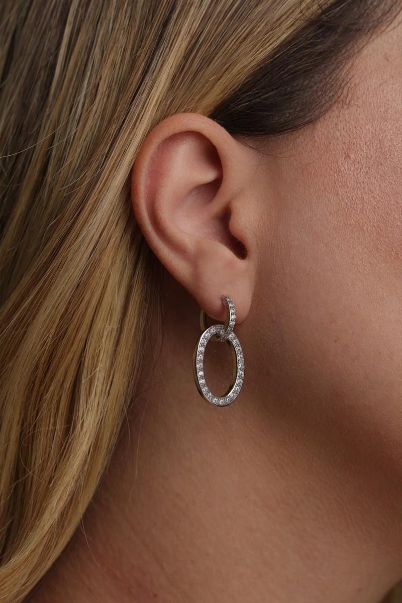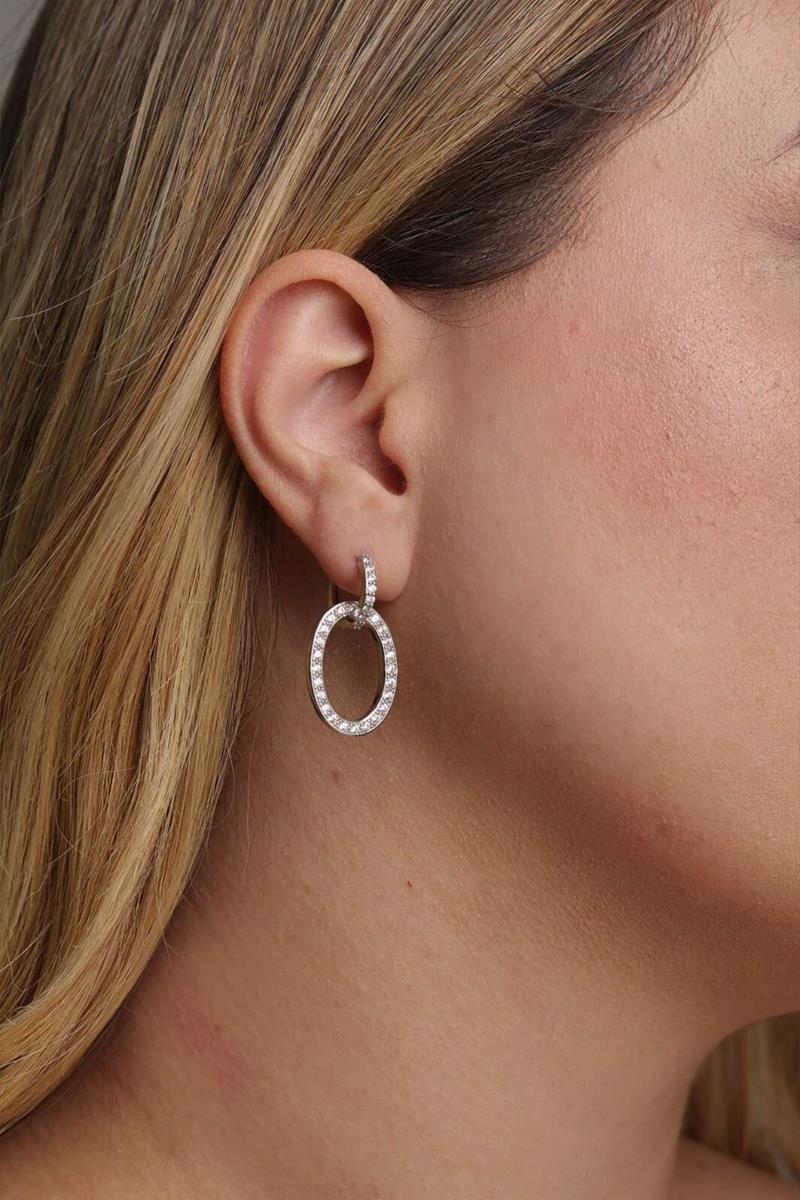 Brinco - Prata com Zircônias Oval Removível – 2 em 1