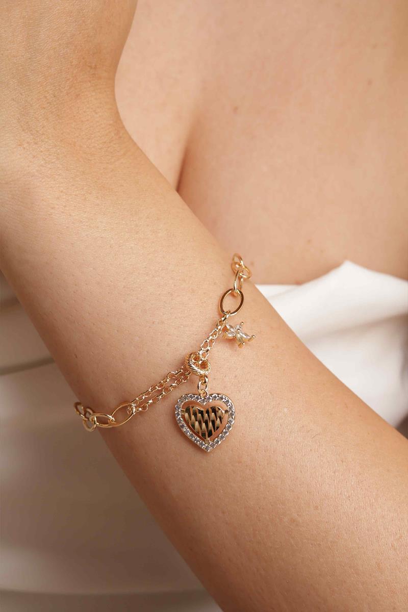 A Pulseira Amor Infinito é uma peça que carrega mais do que estilo — carrega emoção. Seu pingente em formato de coração vazado com textura metálica interna e moldura cravejada em zircônias é um verdadeiro símbolo de amor e sofisticação.