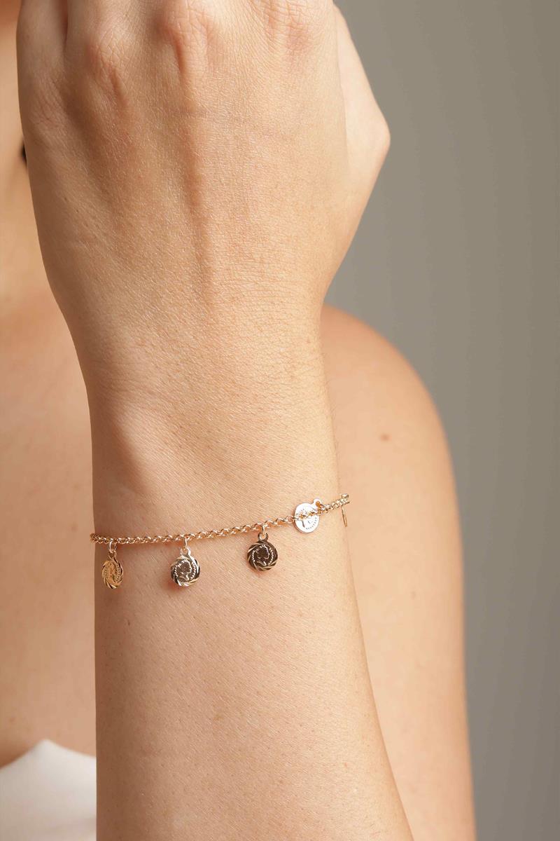 A Pulseira medalhas é a definição de suavidade. Com delicados pingentes em tom dourado, ela é perfeita para quem ama peças minimalistas, mas cheias de charme e significado.