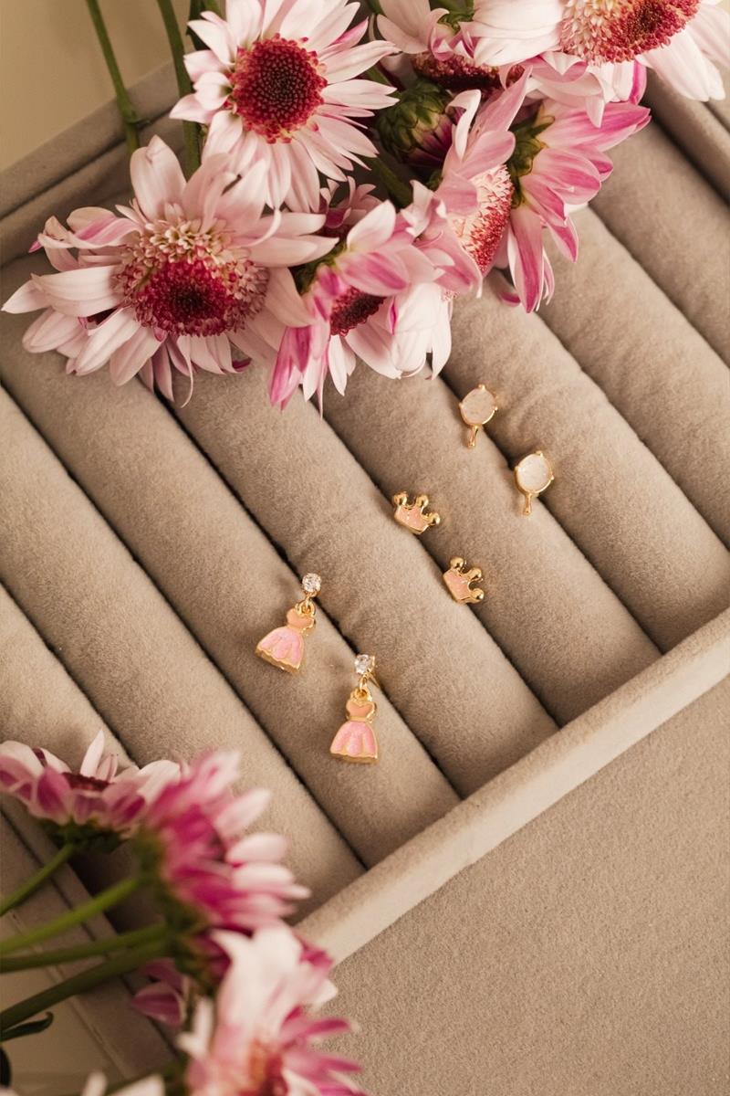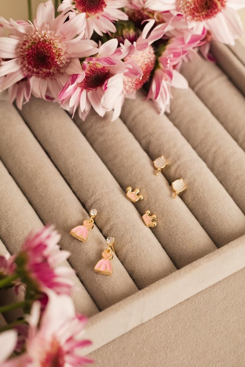 - Design Exclusivo: Inclui três adoráveis brincos em forma de vestido, coroa e espelho, que trazem um toque de fantasia ao visual.