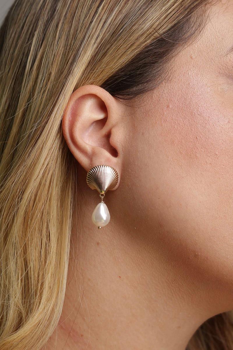 - Modelo: Brinco médio com base de concha e pingente de pérola