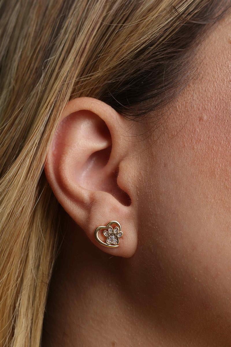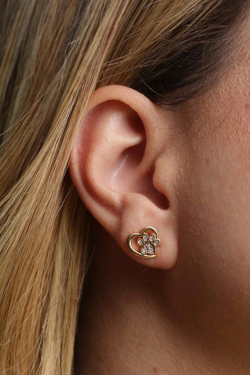 - Modelo: Brinco pequeno com formato de patinha dentro de um coração