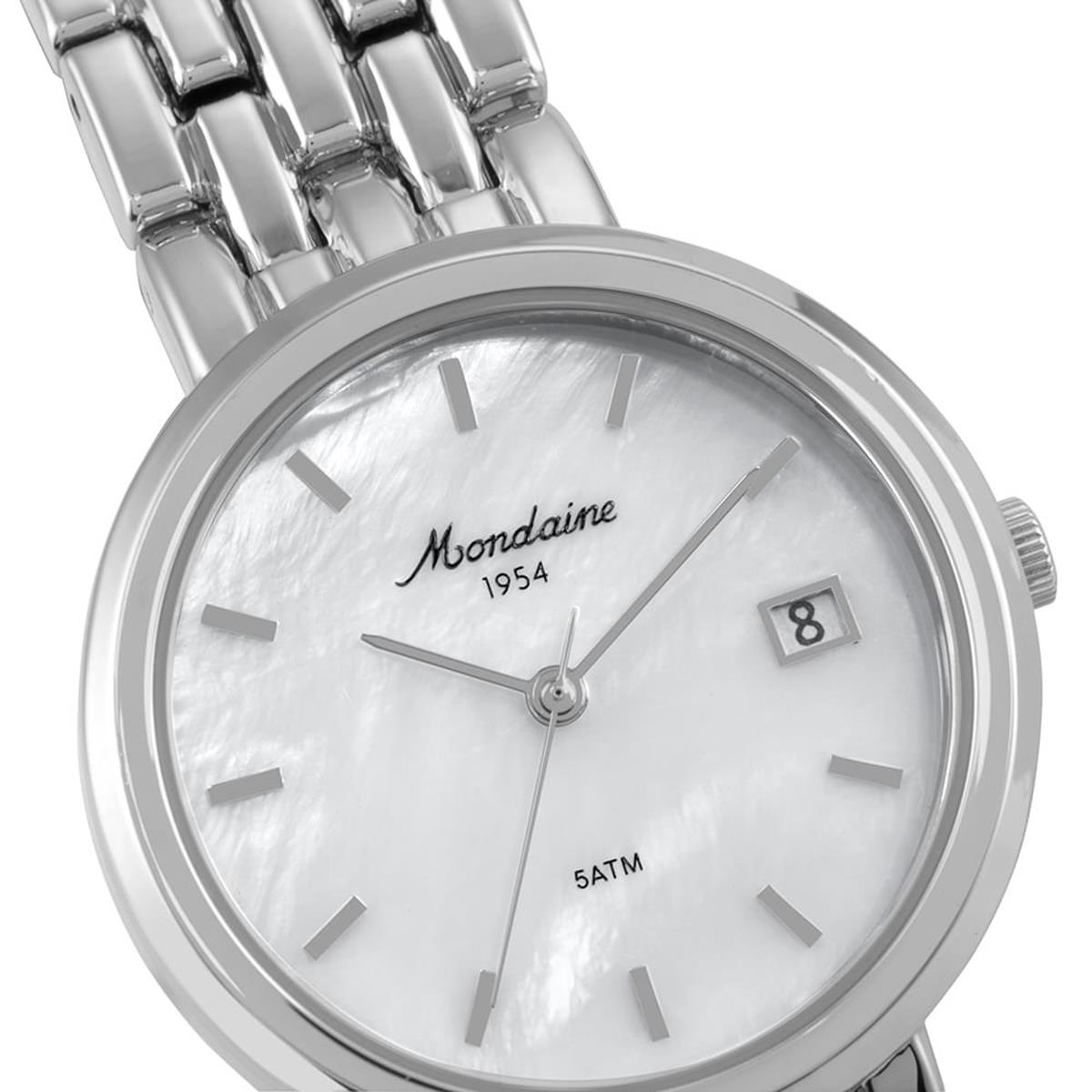 Com toque vintage, este relógio feminino traz mostrador em madrepérola com calendário e marcação com indexes.