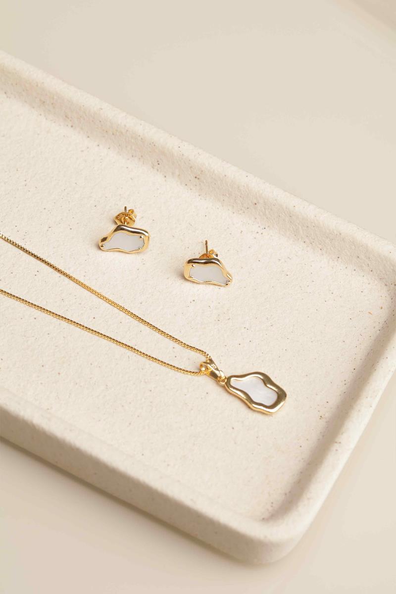 Nosso conjunto com pingente e brincos em madrepérola é a peça que faltava no seu porta-joias!