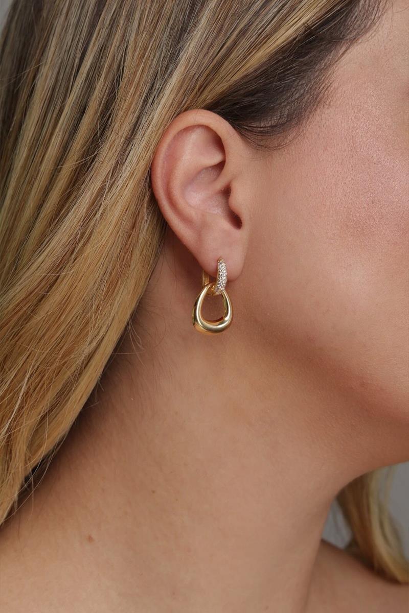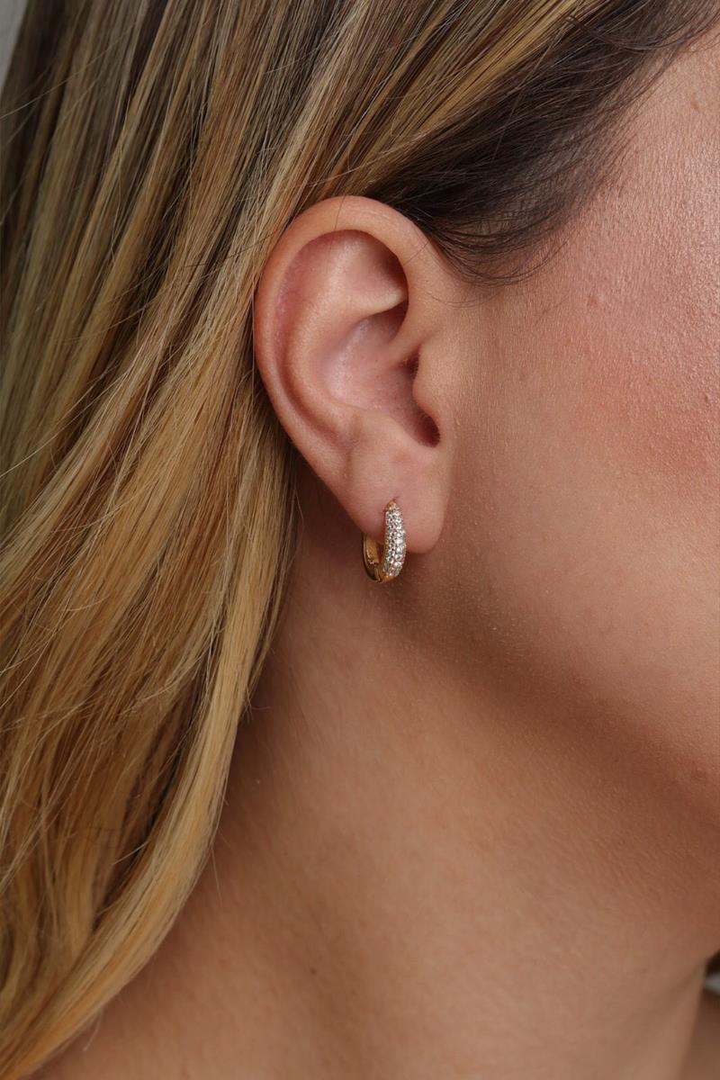 Brinco argola 2 em 1, são brincos de argola clássicos e delicados, com um detalhe de pavé cravejado na parte superior em Zircônia e uma argola lisa na parte inferior.