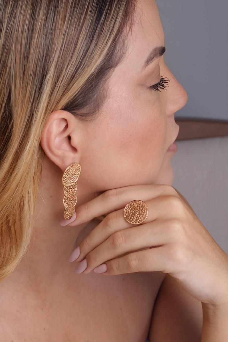 O charme da delicadeza em uma peça única. O Anel Filigrana Circular Dourado traz leveza, textura e elegância com um design artesanal que se destaca sem exageros. Um toque sutil que transforma qualquer look!