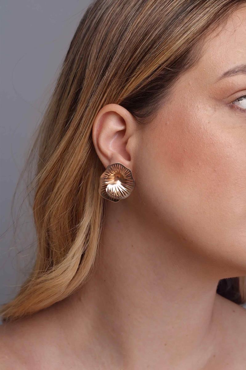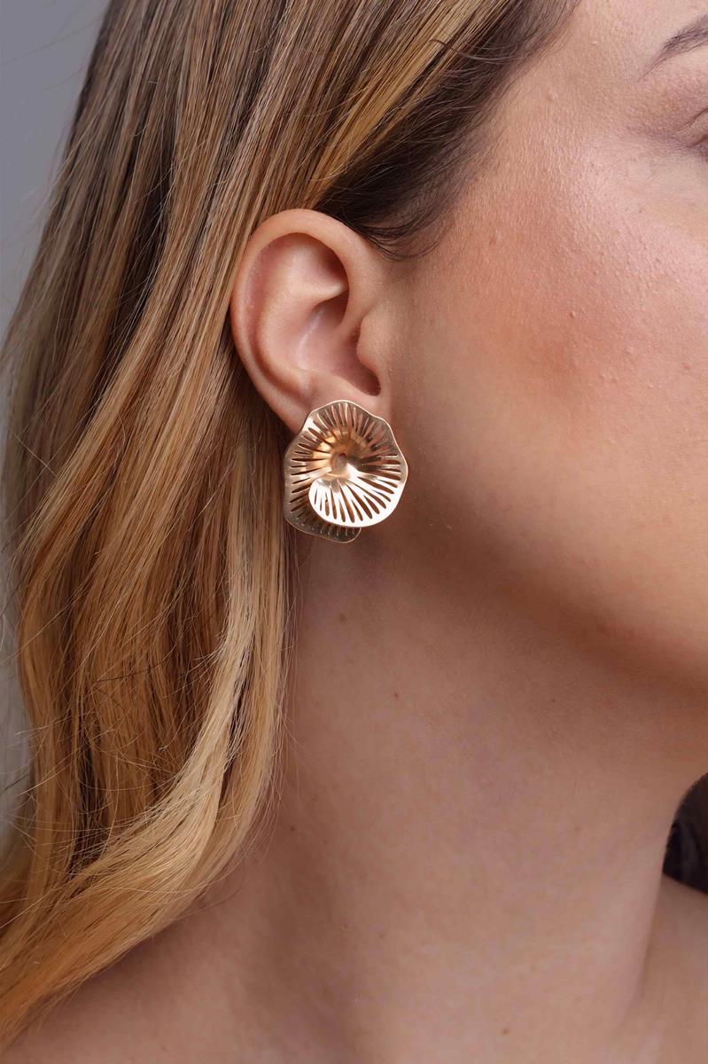 Possuem um design orgânico e sofisticado em formato de flor espiral vazada, que confere leveza e modernidade à peça..