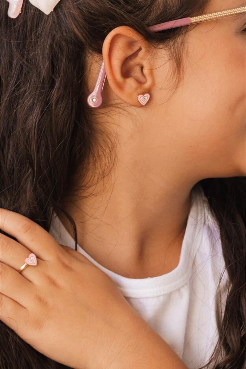 Brinco Infantil em formato de coração,  ideal para dar aquele toque especial no visual da sua pequena.